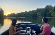 Croisière privative avec cocktail dinatoire sur le Tarn au coucher du soleil à bord du bateau électrique classique "Daphné" : 1h30mn (1 Bouteille de Champagne Mumm 75cl, Ambiance romantique, lampe tampête et plaids, Capitaine pour le service à bord et les commentaires historiques et animaliers lors de la balade, cocktail dînatoire artisanal.