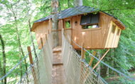 1 nuit insolite dans la cabane « la Sarrazine», perchée à 8 mètres de hauteur au Domaine de Syam, au cœur du Jura.