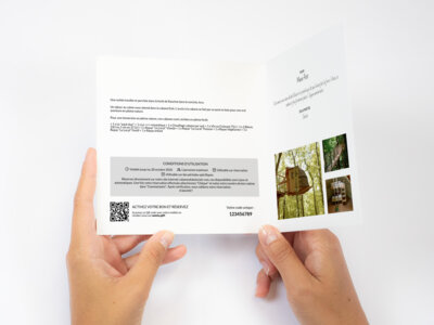 Réservez directement sur notre site internet cabanesduboisclair.com, nos disponibilités sont à jour et automatiques. Une fois votre réservation effectuée sélectionnez "Chèque" et notez votre numéro de bon cadeau dans "Commentaire". Après vérification, nous validons votre réservation.