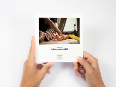 Madérotherapie sur les jambes suivi d’une application de bandes froides imbibées d’une lotion.