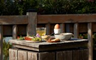 Buffet petit-déjeuner composée de produits de saison et maison servi sur la terrasse face au Mont-Blanc ou dans le restaurant en fonction de la saison.