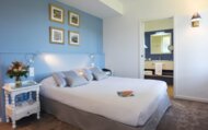 Le confort d'une chambre "Charme Vallée" au style campagne chic avec balcon et vue sur le jardin et les montagnes.