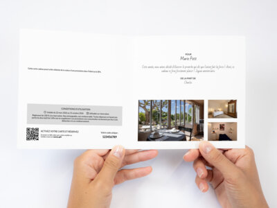 Cette carte cadeau pourra être déduite de la valeur d’une prestation dans l’hôtel ou le SPA.