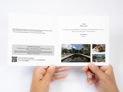Règlement de 100 % à la réservation. Non échangeable, non remboursable. Toutes dépenses ne faisant pas partie du descriptif de l'offre est en supplément. Les prestations non consommées ne donnent pas lieu à une déduction ni à un remboursement.