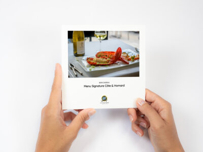 Il se compose d'une coupe de champagne accompagnée d'amuse-bouche, Ravioles de Homard et son jus de crustacés, Homard au four entier 500g, sabayon citron et persil, légumes rôtis et crème de purée de saison. Le dessert est au choix.