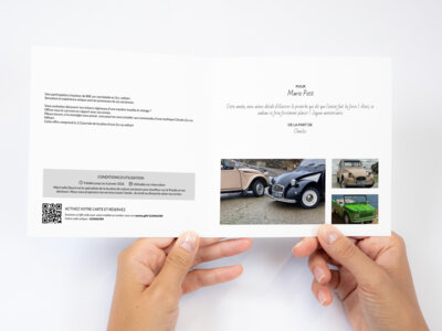 Cette offre comprend la 1/2 journée de location d'une 2cv ou méhari