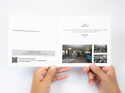 un bon cadeau valorisé à déduire sur un repas pris dans notre restaurant