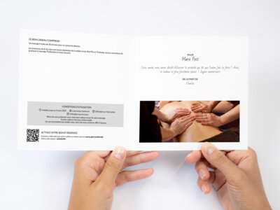 Merci de vous présenter avec votre bon cadeau le jour de votre massage.