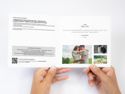 Bon cadeau non remboursable ni échangeable. Le photographe se réserve le droit de refuser de réaliser des photos ne correspondant pas à son style ou à son éthique.
