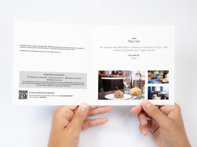 Je viens d'acheter un bon cadeau pour 2 menus gourmet. Le bon est directement téléchargeable après l'achat. Le bon est très sympa avec les consignes d'impression pour gérer le recto verso et le pliage. Jusque là je suis très contente de mon achat. Pour l'avis sur le repas, je laisserai les bénéficiaires du cadeau s'exprimer :-)