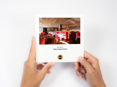 Menu Gastronome comprenant : une mise en bouche, une entrée, un plat et un dessert, hors suppléments et boissons.