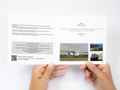 Valable pour votre vol privilège suivant le parcours établis par nos soins (~1h de vol) en aérodyne ULM Avion Multiaxes P92.